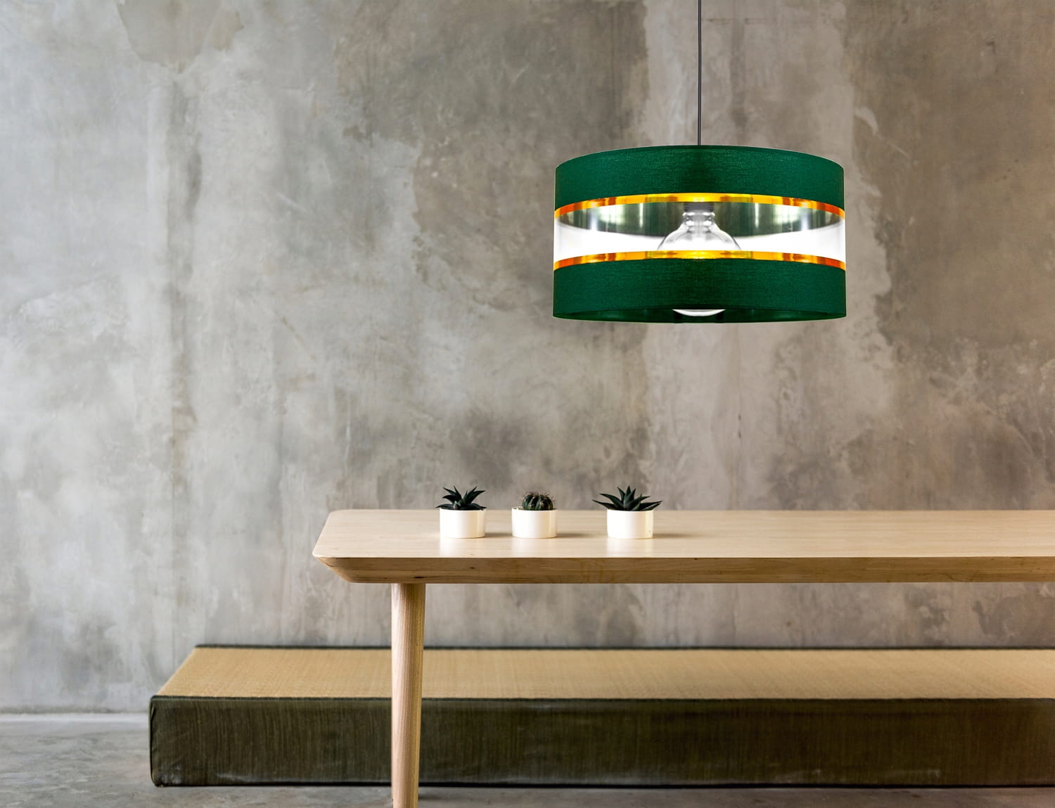 Lampa wisząca - butelkowa zieleń ze złotymi paskami 1xE27