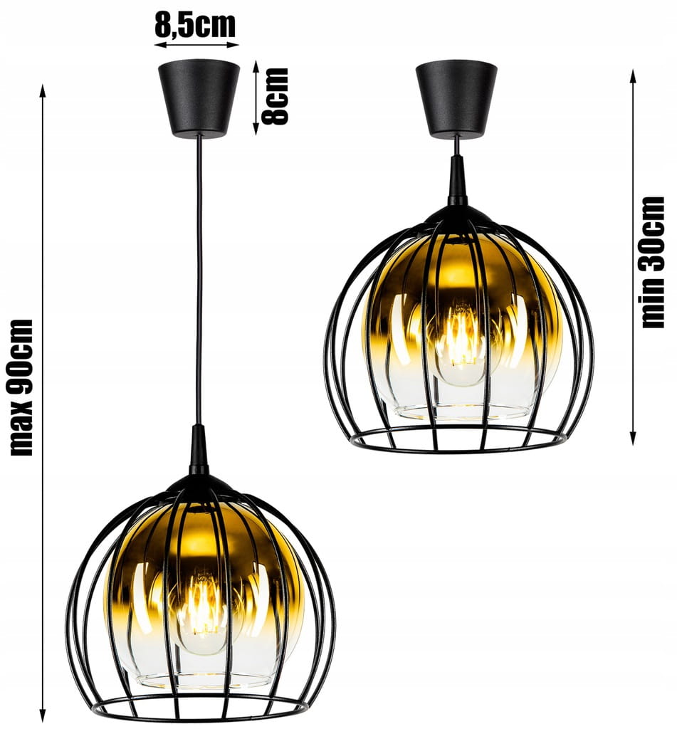 - Kolor szklanego klosza: Złoty (Gradient do bezbarwnego)