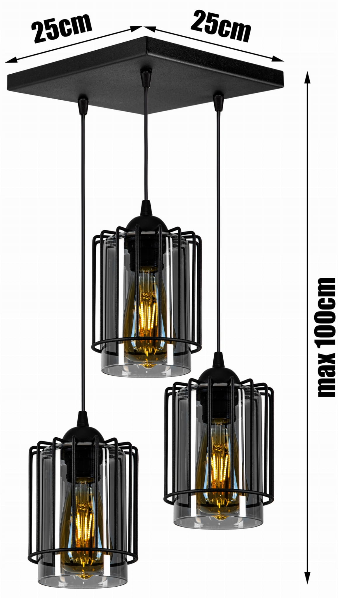 - Wymiary: plafon 25cm x 25cm x max 100cm